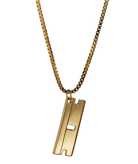 The tough sharp aspect makes it an essential accessory for men but also for w. You start with a ball-chain necklace and attach something that looks like but is probably not actually a double-edged razor blade. Gold Razor Blade Necklace Razor Blade Charm Gothic Jewelry Razor Pendant Razor Blade Jewelry Layering Necklace Gold Statement Necklace meytalbarnoy 5 out of 5 stars 871 Sale Price 6265 6265 6961 Original Price 6961 10 off.